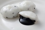 越後のコシヒカリを使用し蒸しあげた御餅の中に上質な練りごまにでんぷんと砂糖を加えとろみある胡麻だれを入れました。冷たく冷やして召し上がっていただくと、おいしさが広がります。